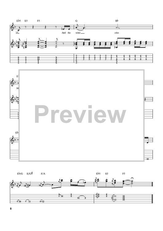"The Wind Cries Mary" Sheet Music by Jimi Hendrix