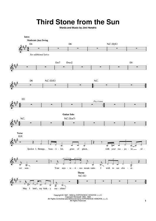 "Third Stone From The Sun" Sheet Music by Jimi Hendrix