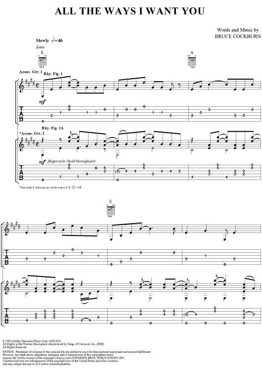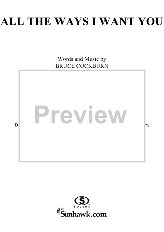 Digital Sheet Music for All the Ways I Want You by Bruce Cockburn, Jimmy Buffett scored for Guitar Tab/Vocal; id:293590
