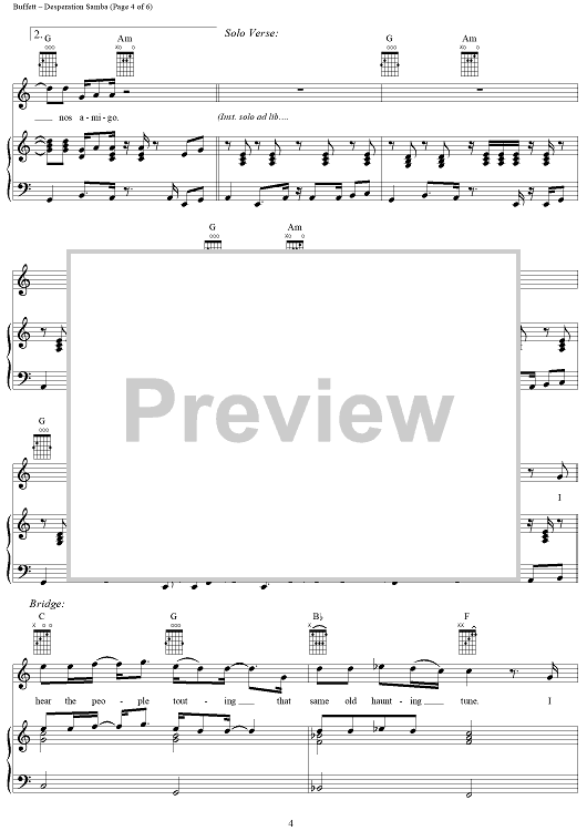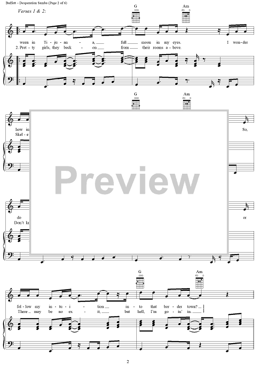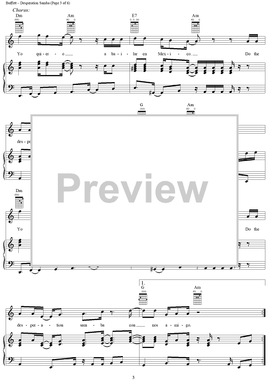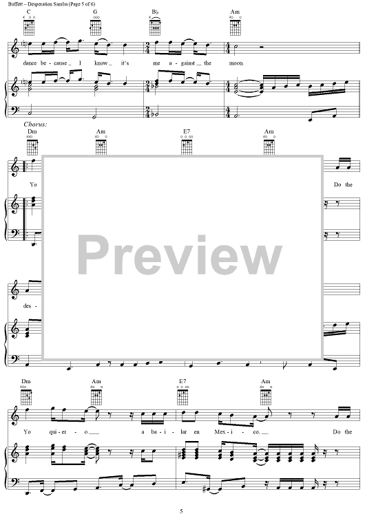 Digital Sheet Music for Desperation Samba by Will Jennings, Timothy B. Schmit, Jimmy Buffett scored for Piano/Vocal/Chords; id:304265