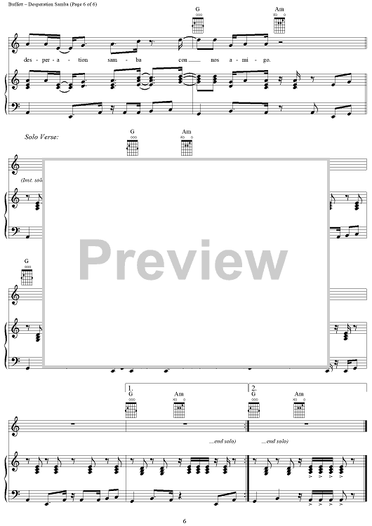 "Desperation Samba" Sheet Music by Jimmy Buffett