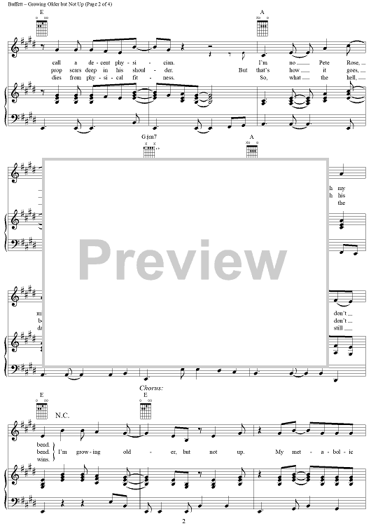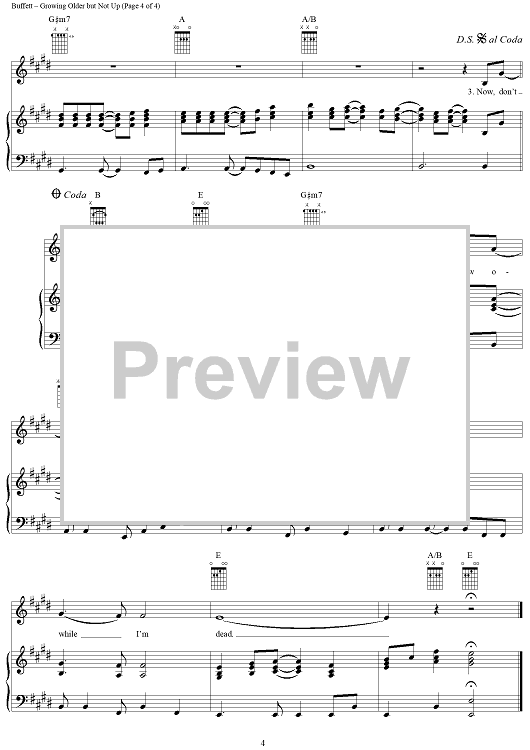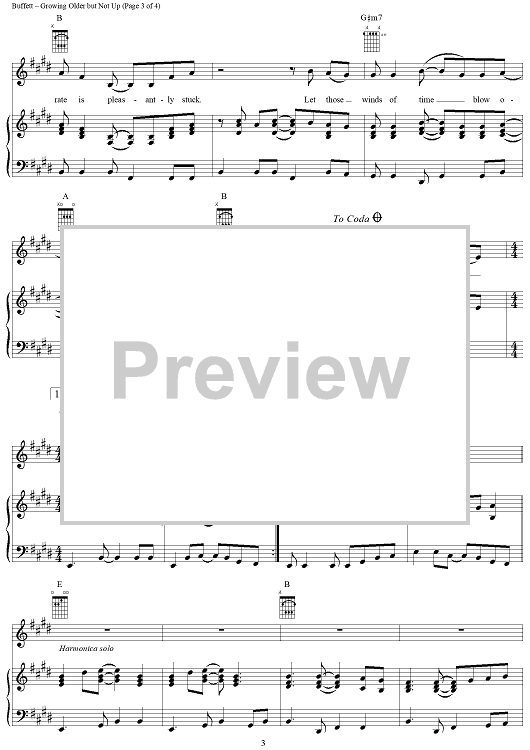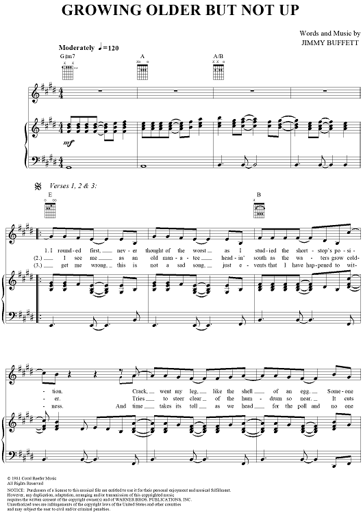 Digital Sheet Music for Growing Older but Not Up by Jimmy Buffett scored for Piano/Vocal/Chords; id:304269