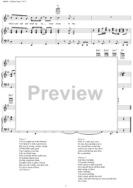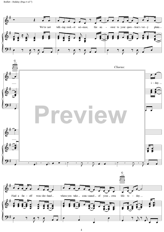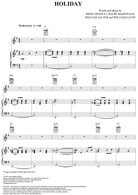Digital Sheet Music for Holiday by William Salter, Ralph MacDonald, Jimmy Buffett, William Eaton scored for Piano/Vocal/Chords; id:304273