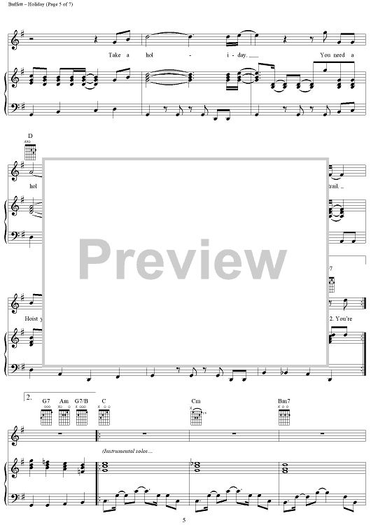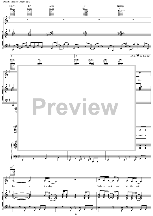 "Holiday" Sheet Music by Jimmy Buffett