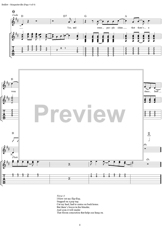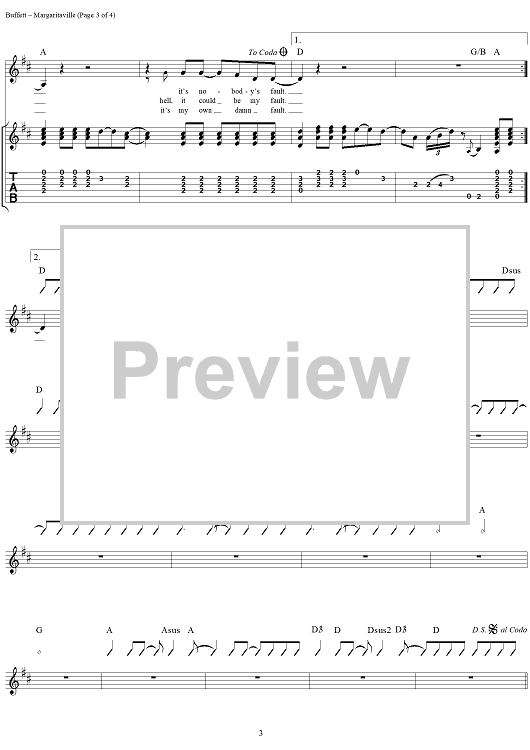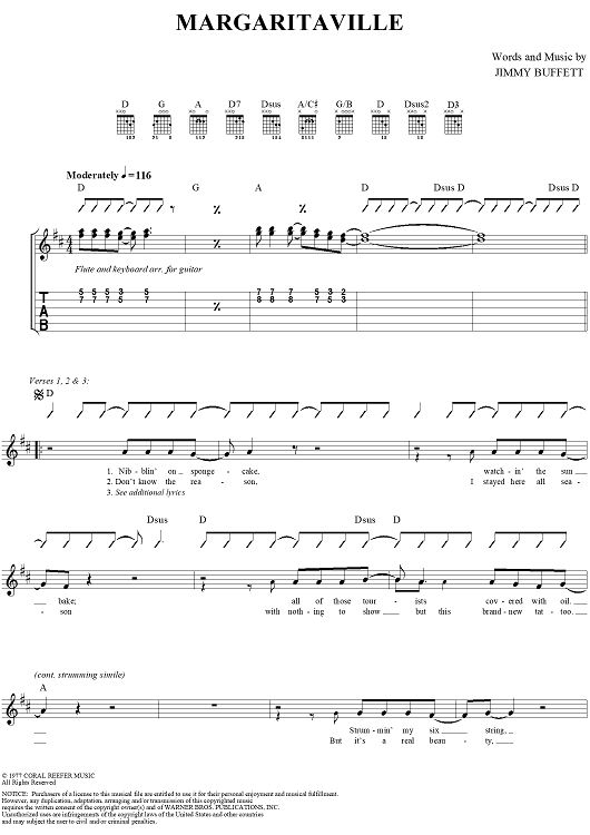 Digital Sheet Music for Margaritaville by Mike Taylor, Jimmy Buffett scored for Guitar Tab/Vocal; id:285491