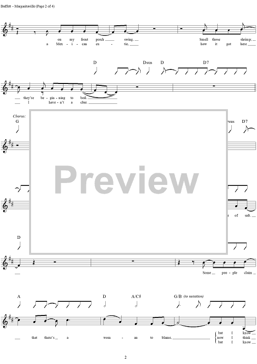 "Margaritaville" Sheet Music by Jimmy Buffett