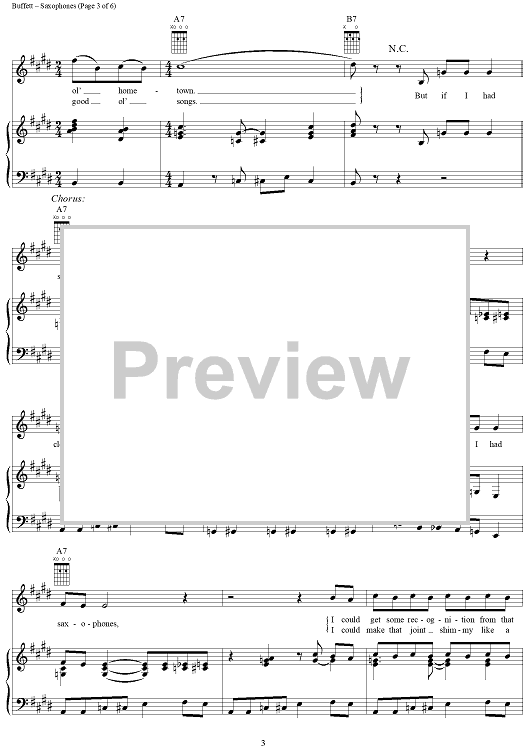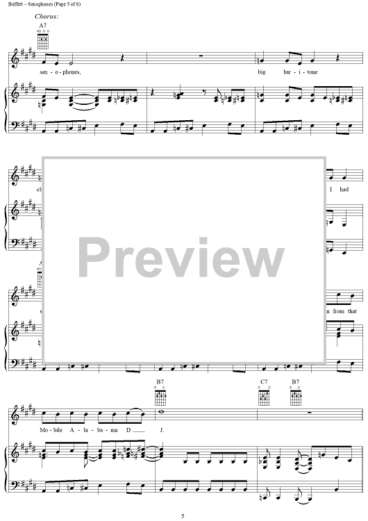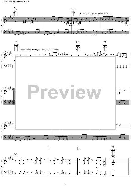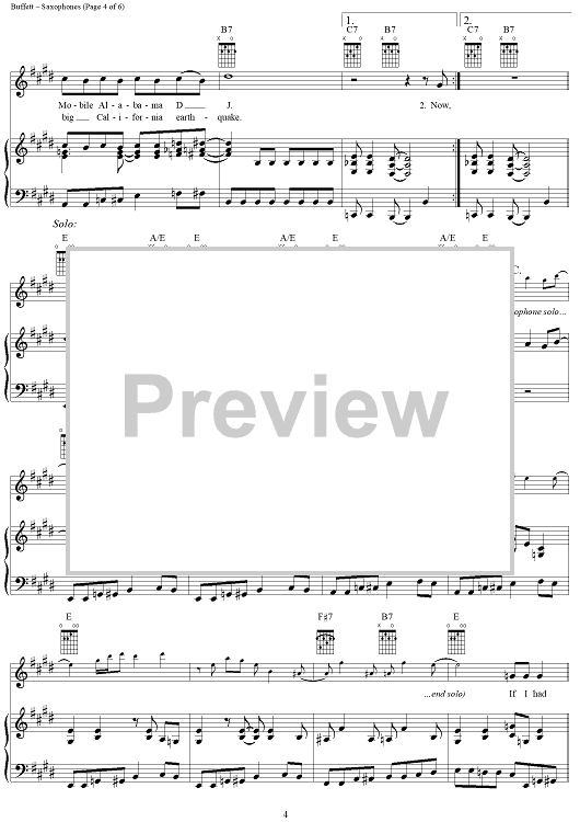Digital Sheet Music for Saxophones by Jimmy Buffett scored for Piano/Vocal/Chords; id:304302