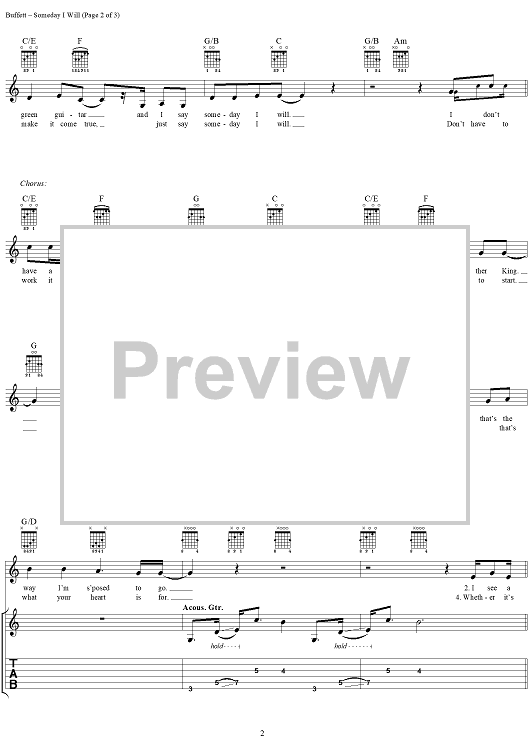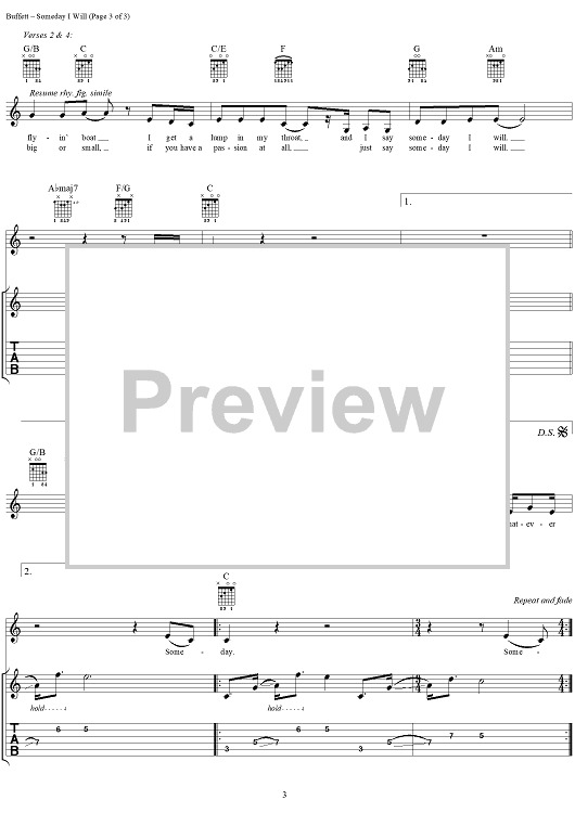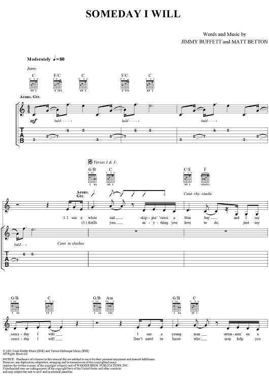 Digital Sheet Music for Someday I Will by Jimmy Buffett, Matt Betton scored for Guitar Tab/Vocal; id:293598
