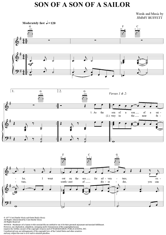 "Son of a Son of a Sailor" Sheet Music by Jimmy Buffett