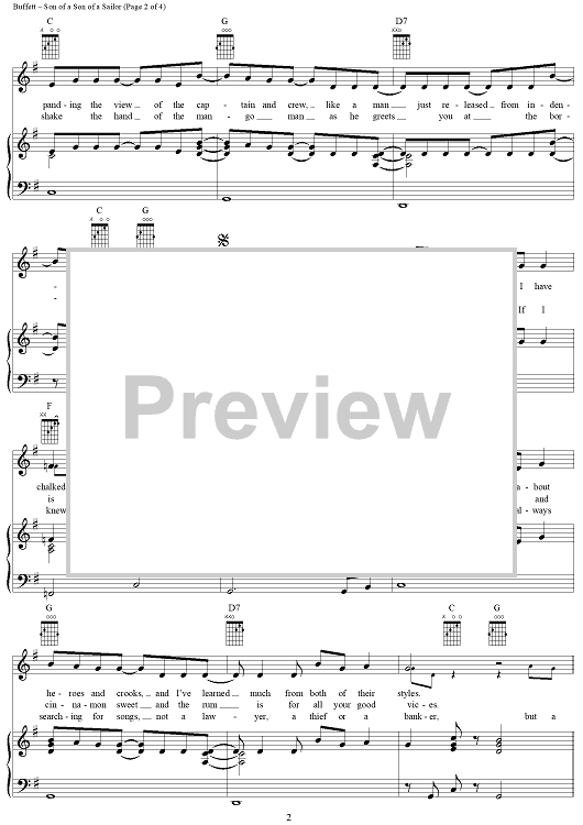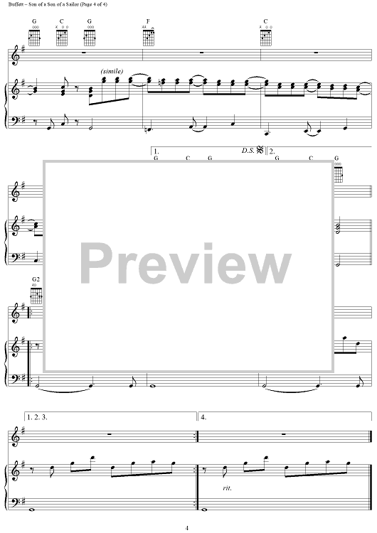Digital Sheet Music for Son of a Son of a Sailor by Jimmy Buffett scored for Piano/Vocal/Chords; id:304303