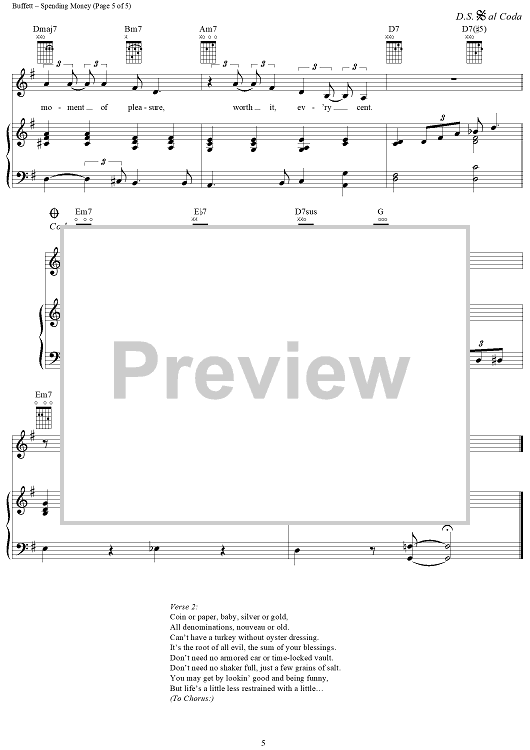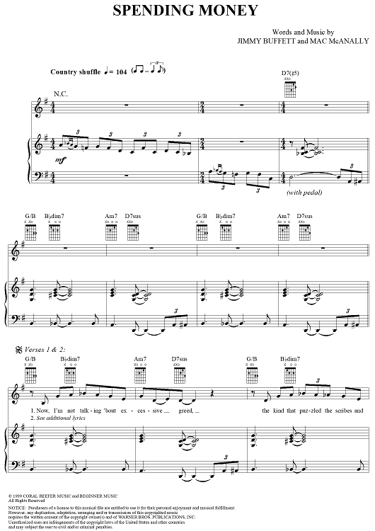 Digital Sheet Music for Spending Money by Mike Taylor, Mac McAnally, Jimmy Buffett scored for Piano/Vocal/Chords; id:241684