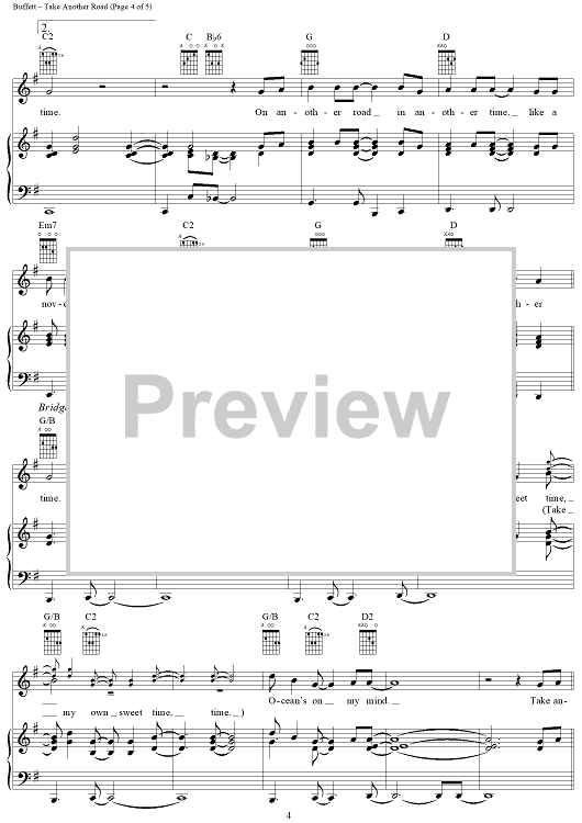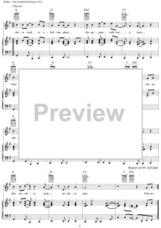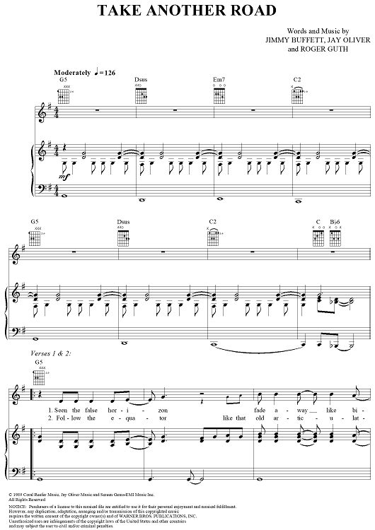 Digital Sheet Music for Take Another Road by Roger Guth, Jay Oliver, Jimmy Buffett scored for Piano/Vocal/Chords; id:304305