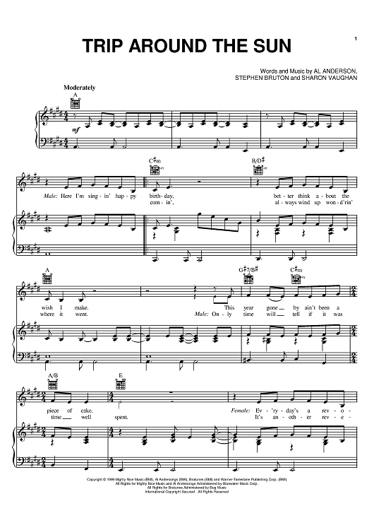 Digital Sheet Music for Trip Around The Sun by Al Anderson, Martina McBride, Sharon Vaughn, Jimmy Buffett, Stephen Bruton scored for Piano/Vocal/Chords; id:380496