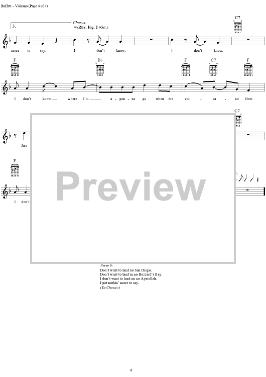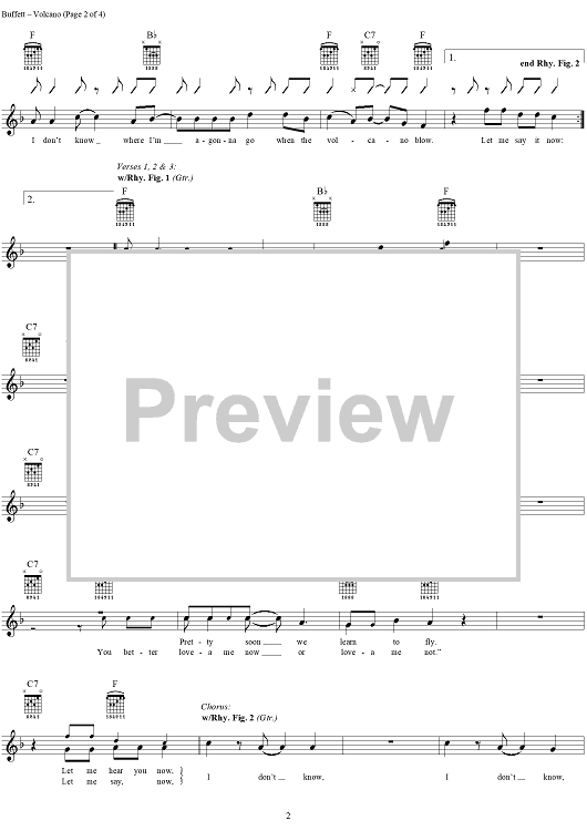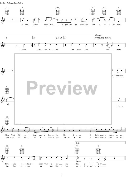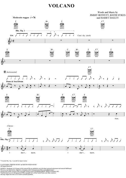 Digital Sheet Music for Volcano by Mike Taylor, Keith Sykes, Harry Dailey, Jimmy Buffett scored for Guitar Tab/Vocal; id:284354