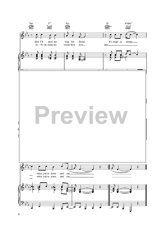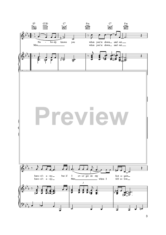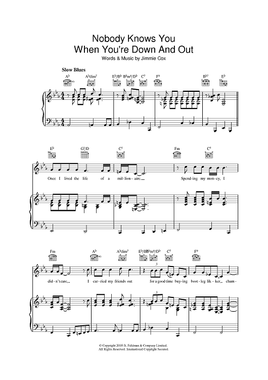 Digital Sheet Music for Nobody Knows You When You're Down And Out by Jimmy Cox scored for Piano/Vocal/Chords; id:395598