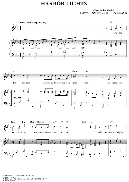 Digital Sheet Music for Harbor Lights by Hugh Williams, Jimmy Kennedy, The Platters scored for Piano/Vocal/Chords; id:297215