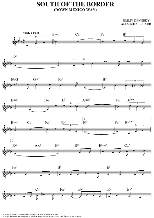 Digital Sheet Music for South Of The Border (Down Mexico Way) by Michael Carr, Jimmy Kennedy scored for Lead Sheet; id:456457