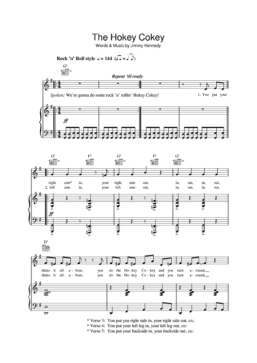 Digital Sheet Music for The Hokey Cokey by Jimmy Kennedy scored for Piano/Vocal/Chords; id:397727