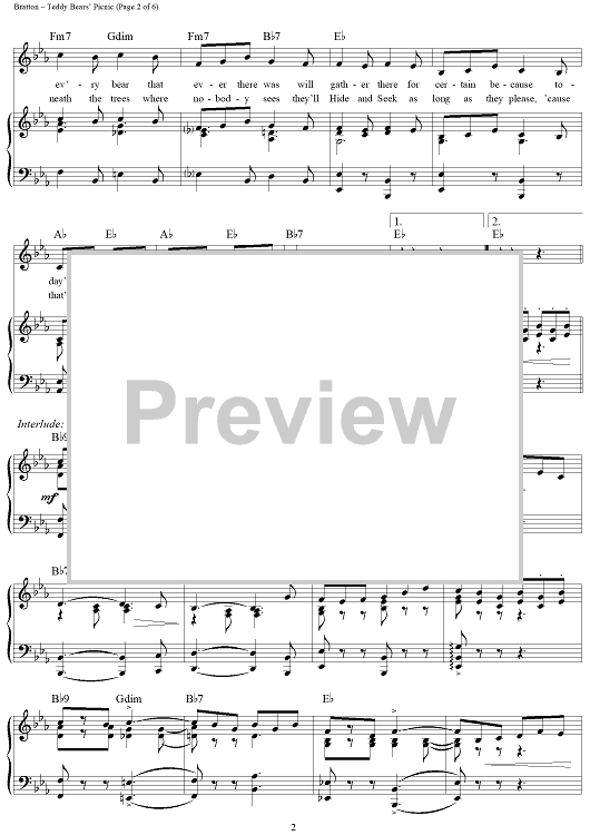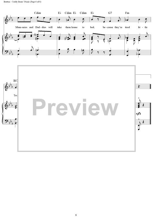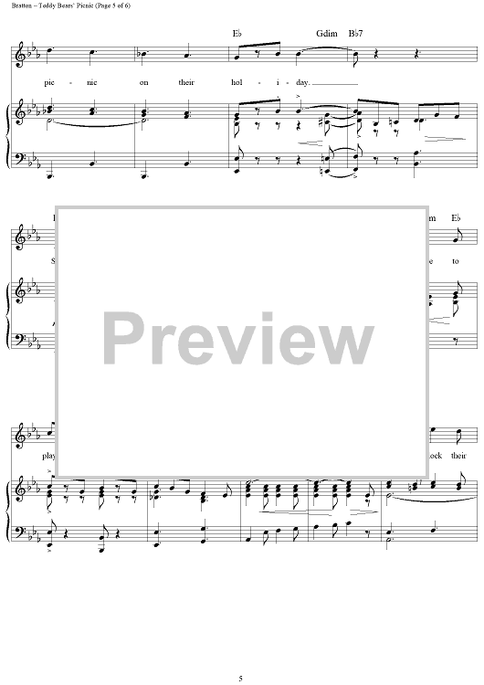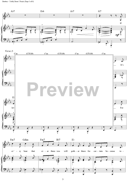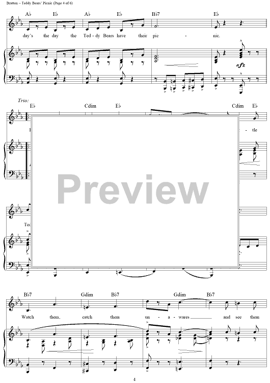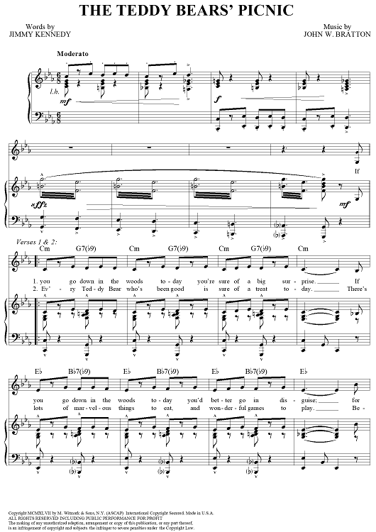 Digital Sheet Music for The Teddy Bears' Picnic by Jimmy Kennedy, John W. Bratton scored for Piano/Vocal/Chords; id:189578