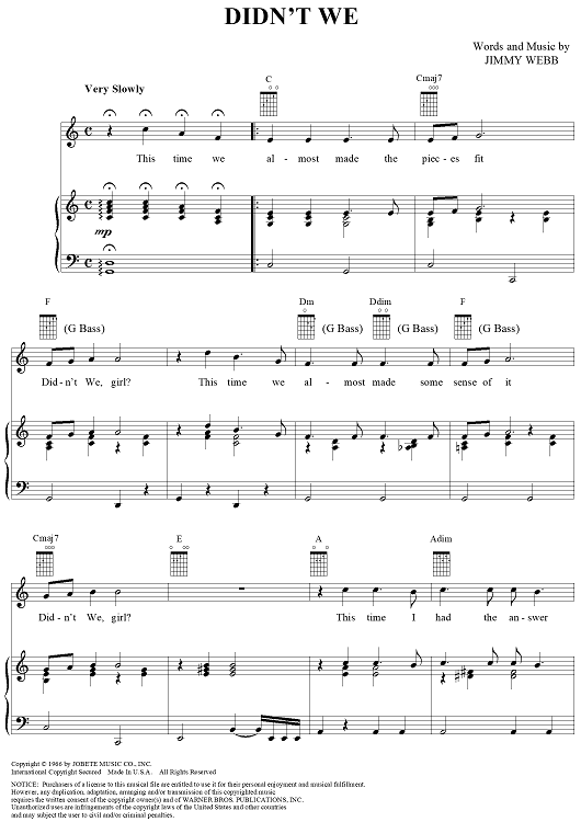 Digital Sheet Music for Didn't We by Richard Harris, Jimmy Webb scored for Piano/Vocal/Chords; id:264249