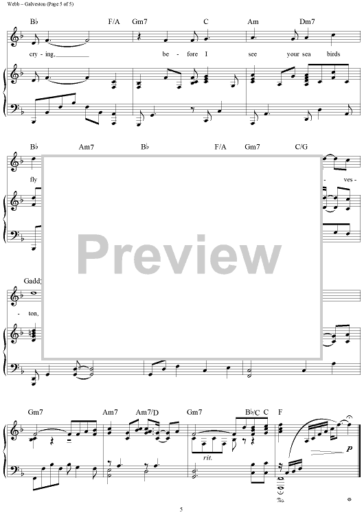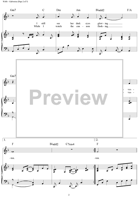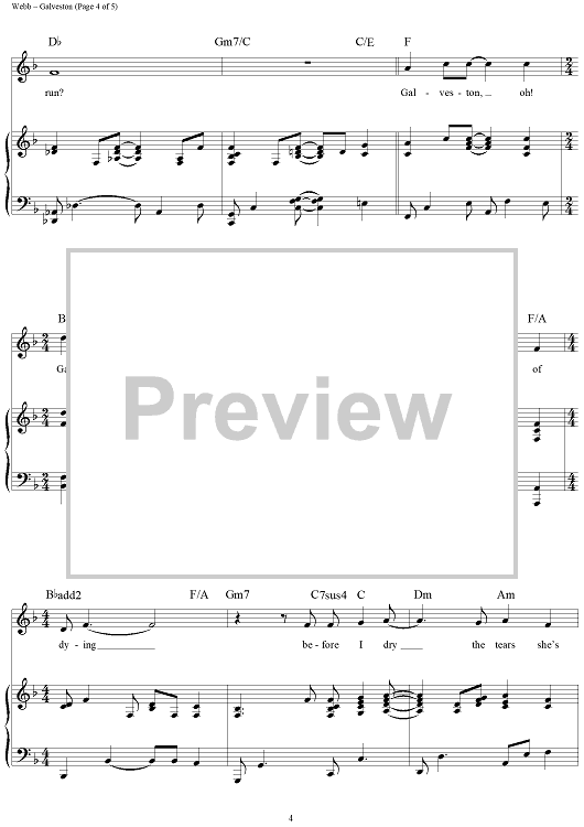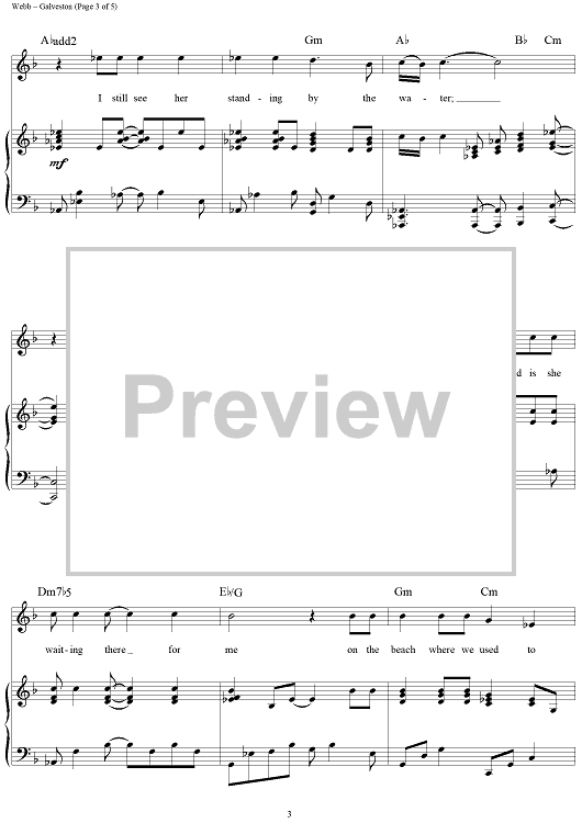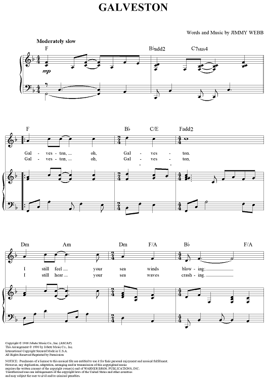 Digital Sheet Music for Galveston by Glen Campbell, Jimmy Webb scored for Piano/Vocal/Chords; id:264306