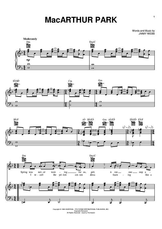 Digital Sheet Music for MacArthur Park by Four Tops, Waylon Jennings, Glen Campbell, Richard Harris, Donna Summer, Jimmy Webb scored for Piano/Vocal/Chords; id:381634