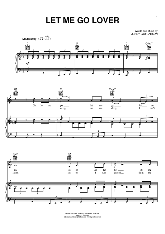 Digital Sheet Music for Let Me Go Lover by Jenny Lou Carson, Hank Snow, Joan Weber scored for Piano/Vocal/Chords; id:395160