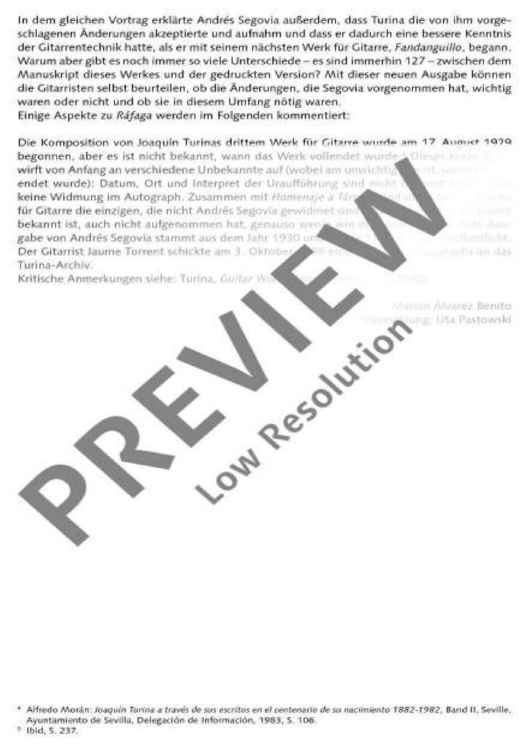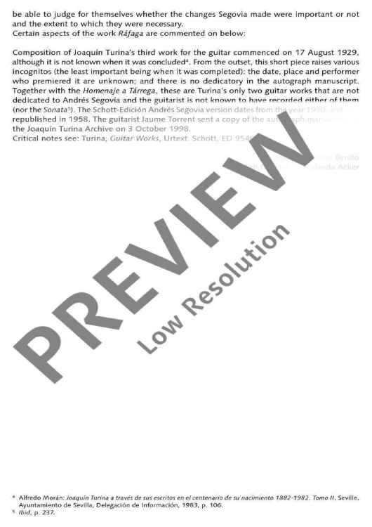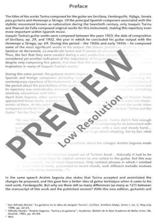 The Spaniard Joaquin Turina (1882-1949) was one of the first contemporary composers who, addressed by the outstanding guitarist Andrés Segovia, wrote contemporary original works for the guitar, thus paving the way for this instrument onto the international concert stages in the 20th century. Meanwhile, it is a known fact that Segovia often edited the musical text of the compositions written for him and arranged it according to his personal style of interpretation. Our new editions of Turina's most important works are therefore based on both the first editions and the original autograph versions, thus presenting for the first time the original text. Today, no performer can get around these new editions if he/she wants to deal with Turina's artistic legacy in a responsible manner.