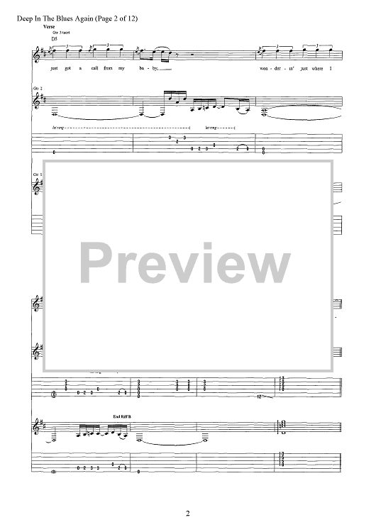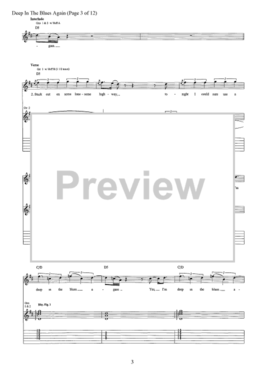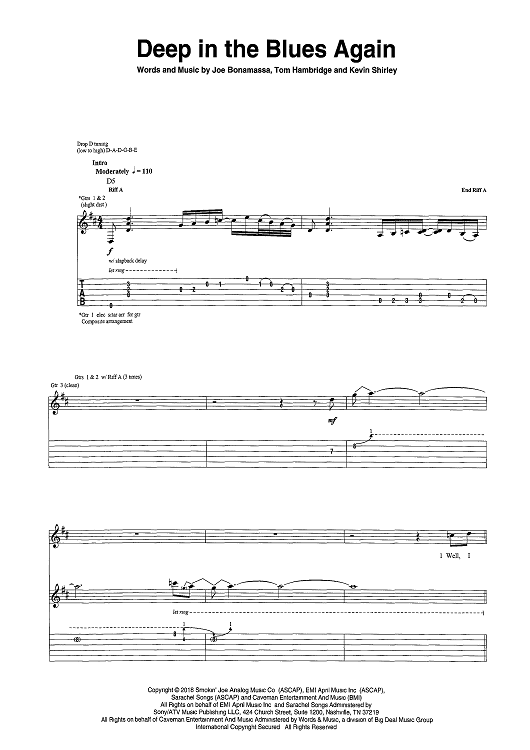 Digital Sheet Music for Deep In The Blues Again by Joe Bonamassa, Tom Hambridge, Kevin Shirley scored for Guitar Tab/Vocal/Chords; id:466932