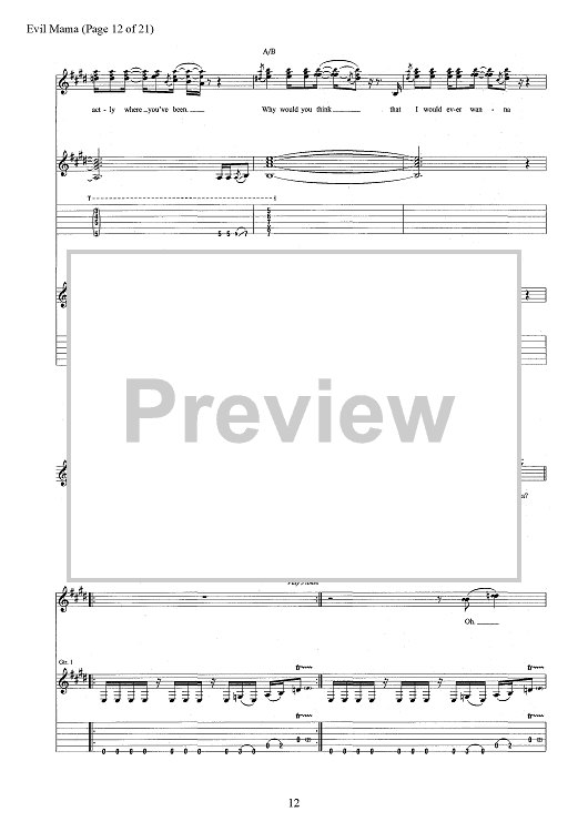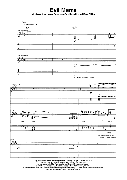 Digital Sheet Music for Evil Mama by Joe Bonamassa, Tom Hambridge, Kevin Shirley scored for Guitar Tab/Vocal/Chords; id:466933