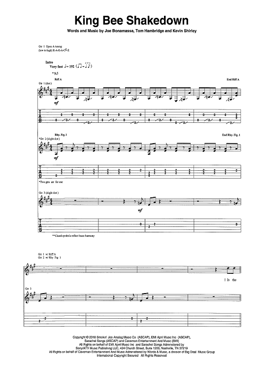 Digital Sheet Music for King Bee Shakedown by Joe Bonamassa, Tom Hambridge, Kevin Shirley scored for Guitar Tab/Vocal/Chords; id:467156