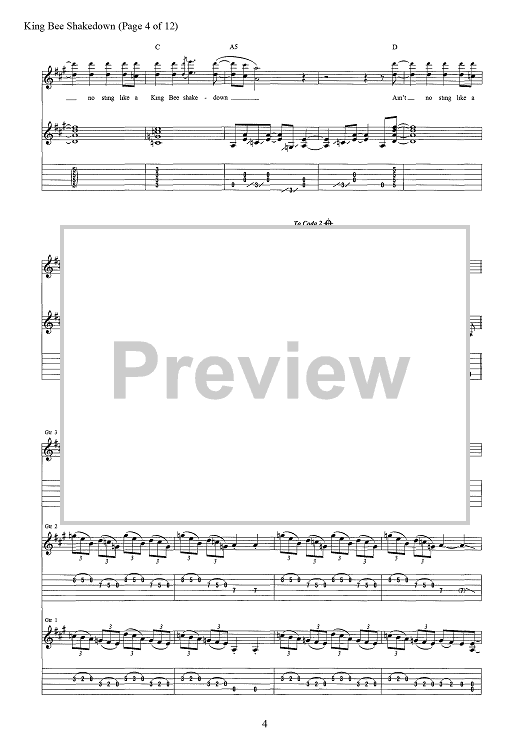 "King Bee Shakedown" Sheet Music by Joe Bonamassa