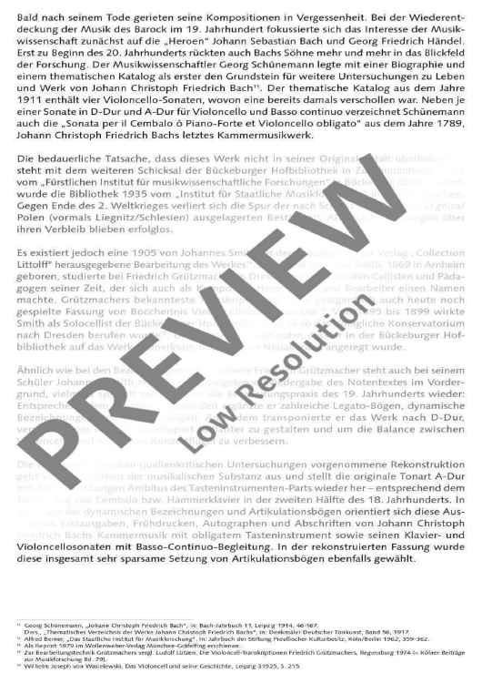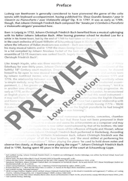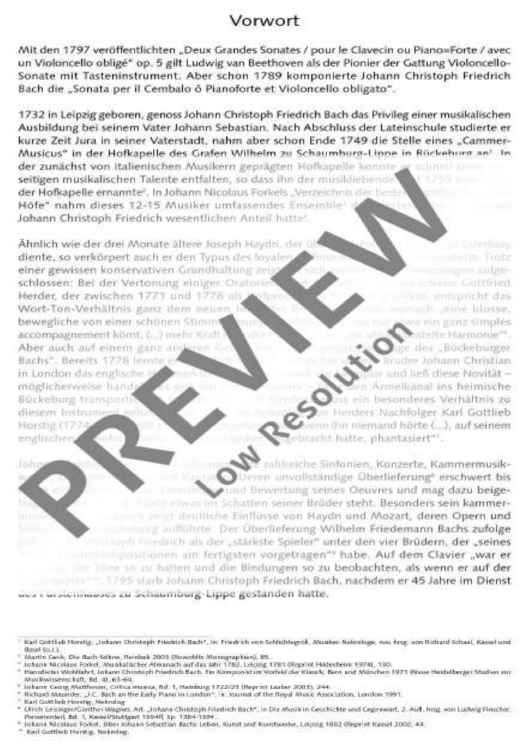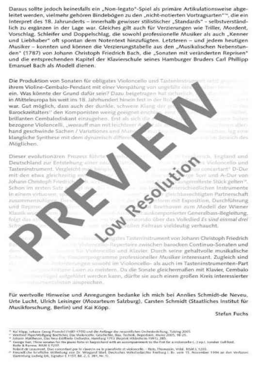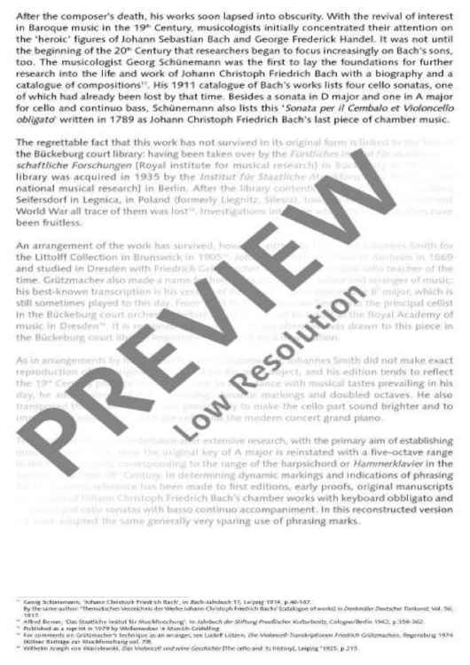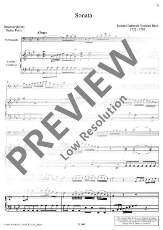 The autograph of this sonata, composed in 1789, was initially extant in Bückeburg under the title of 'Sonata per il Cembalo o Piano-Forte et Violoncello obligato' but was lost in the Second World War. The version then published was merely a substantially revised version which had been transposed to D major. Our new edition reconstructs the work's original state (in A major), taking the common performance practice principles of articulation and dynamics into account. A rewarding, yet fairly easy piece suitable for lessons and concerts which can be regarded as an important link to Beethoven's sonatas.