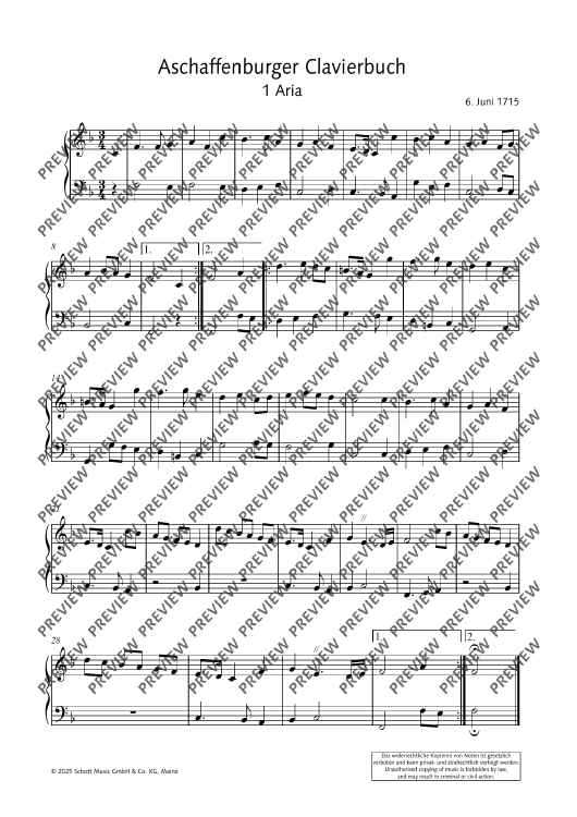 "Aschaffenburg Piano Book" Sheet Music by Johann Pachelbel