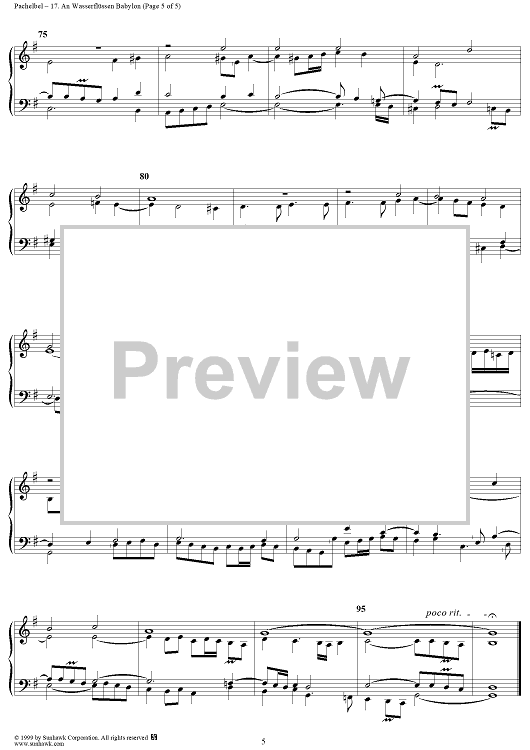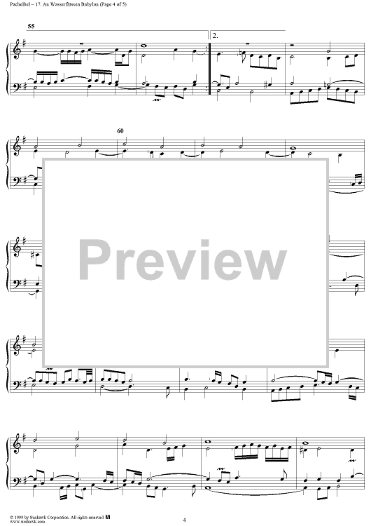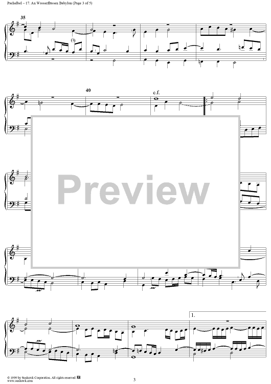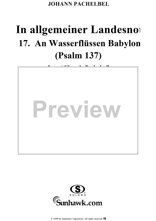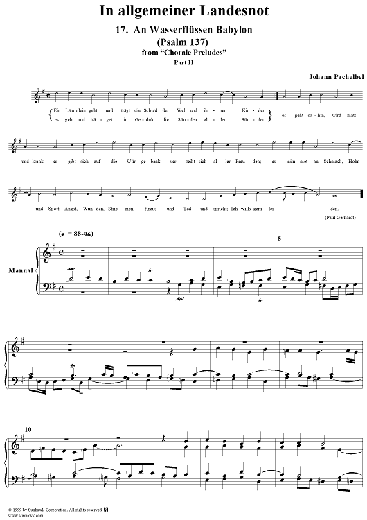 Digital Sheet Music for Chorale Preludes, Part II, In allgemeiner Landesnot, 17. An Wasserflüssen Babylon (Psalm 137) (Ein Lämmlein geht) by Johann Pachelbel scored for Organ Solo; id:254485