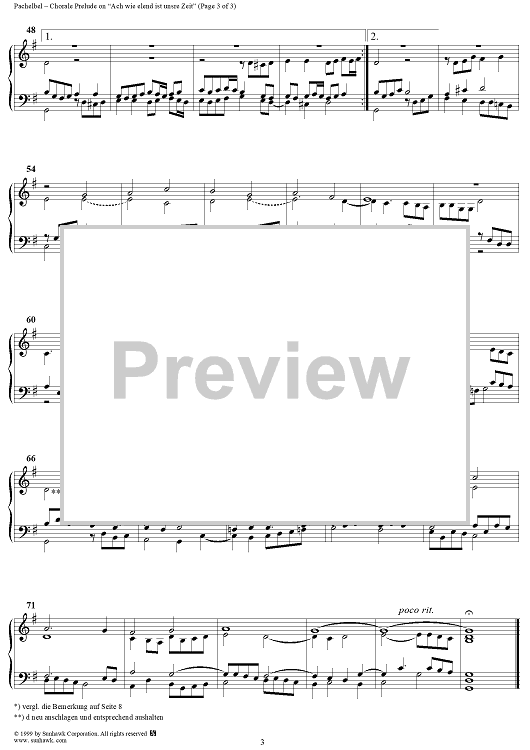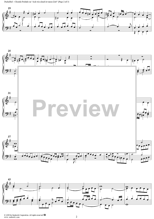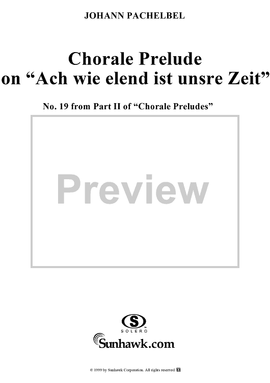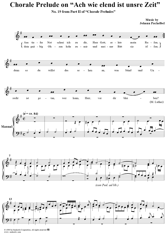 "Chorale Preludes, Part II, In allgemeiner Landesnot, 19. Ach wie elend ist unsre Zeit (Aus tiefer Not schrei ich zu dir)" Sheet Music by Johann Pachelbel