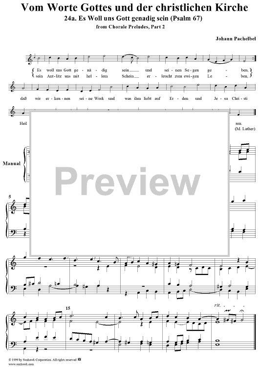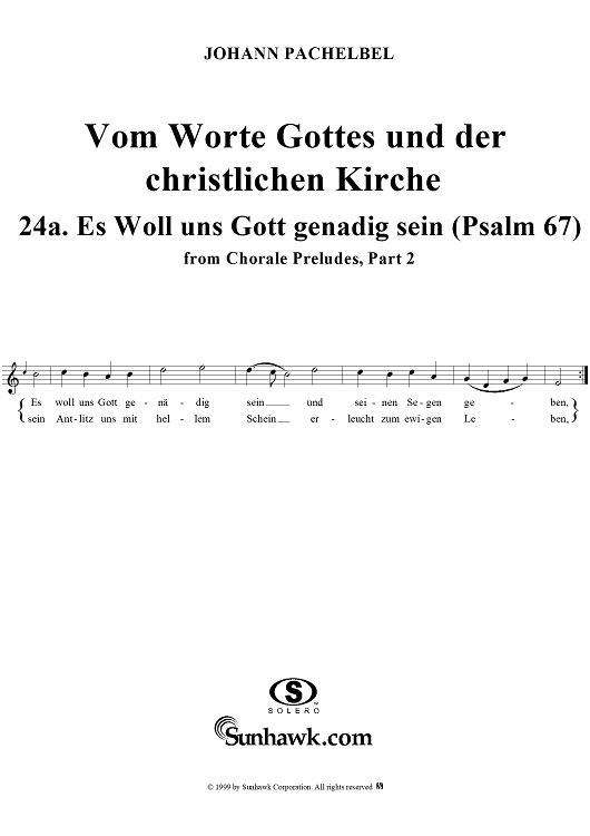 "Chorale Preludes, Part II, Vom Worte Gottes und der christlichen Kirche, 24a. Es woll uns Gott genädig sein (Psalm 67)" Sheet Music by Johann Pachelbel