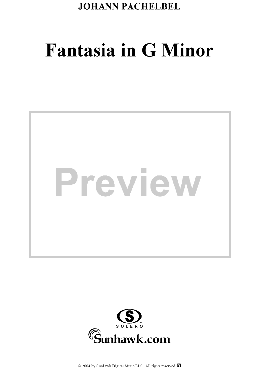 Digital Sheet Music for Fantasia in G Minor by Johann Pachelbel scored for Organ Solo; id:303519