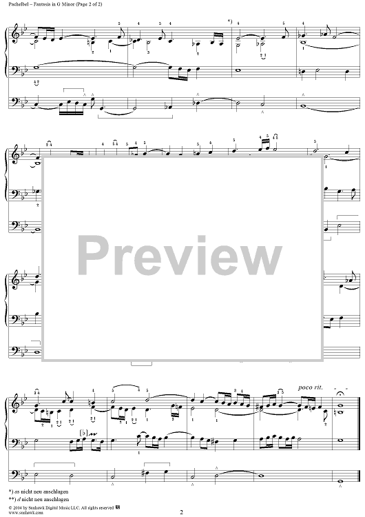 "Fantasia in G Minor" Sheet Music by Johann Pachelbel