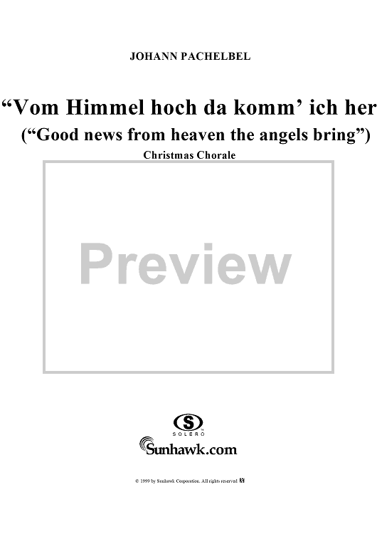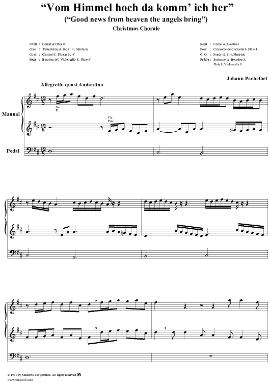"Vom Himmel hoch da komm' ich her" Sheet Music by Johann Pachelbel