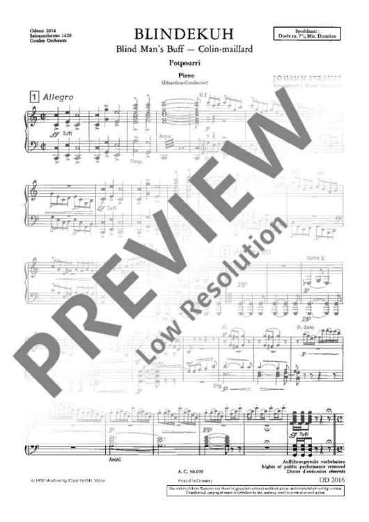 "Blindekuh - Set of Parts" Sheet Music by Johann Strauß (Son)