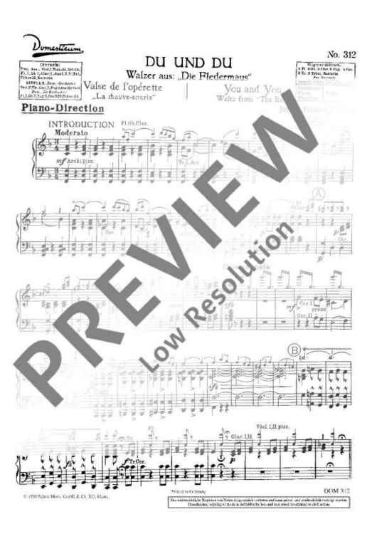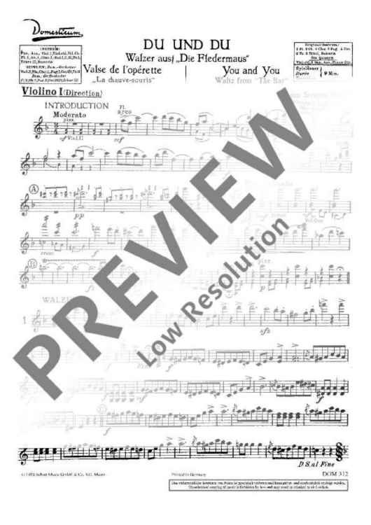 Digital Sheet Music for Du und Du - Score and Parts by Johann Strauß (Son) scored for Salon Orchestra; id:488125