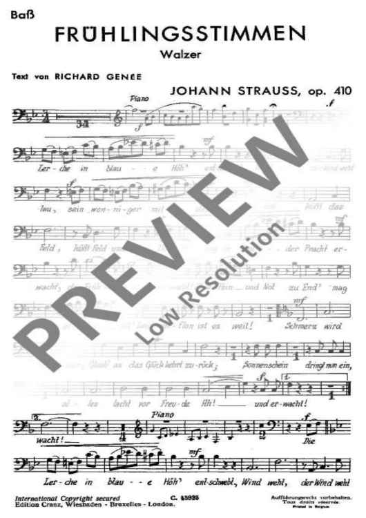 Digital Sheet Music for Frühlingsstimmen - Bass by Johann Strauß (Son) scored for Mixed Choir (satb) And Piano; id:478877