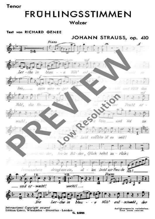 "Frühlingsstimmen - Tenor" Sheet Music by Johann Strauß (Son)