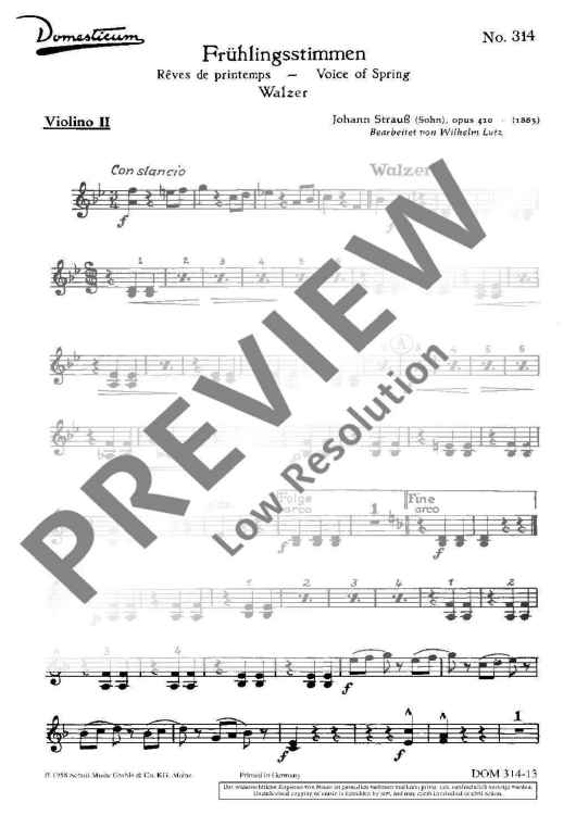Digital Sheet Music for Frühlingsstimmen - Violin II by Johann Strauß (Son) scored for Salon Orchestra; id:488083