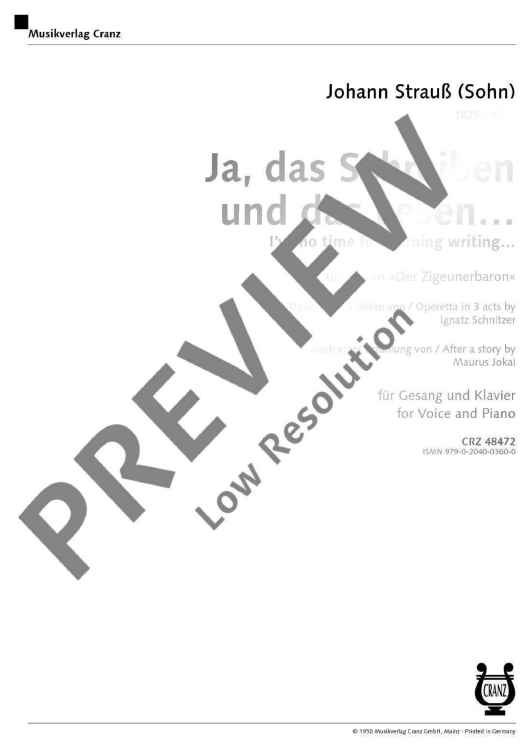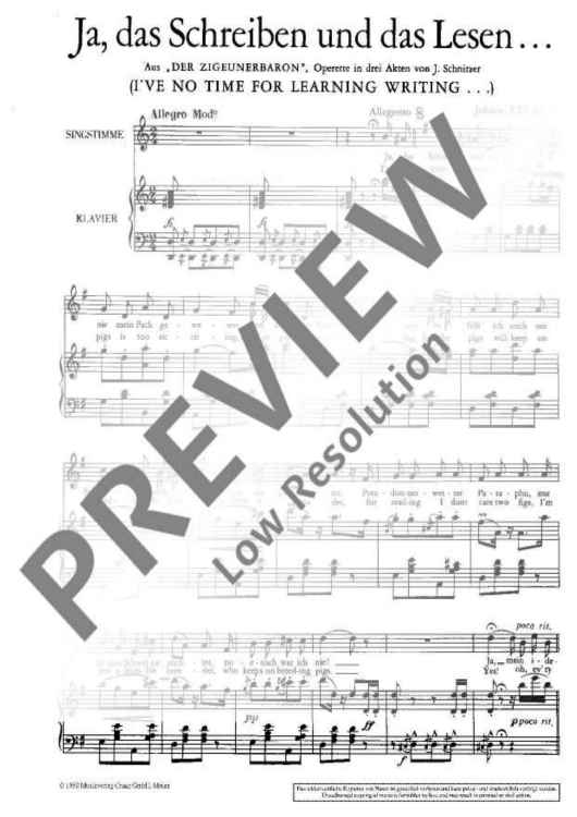 "Ja, das Schreiben und das Lesen" Sheet Music by Johann Strauß (Son)