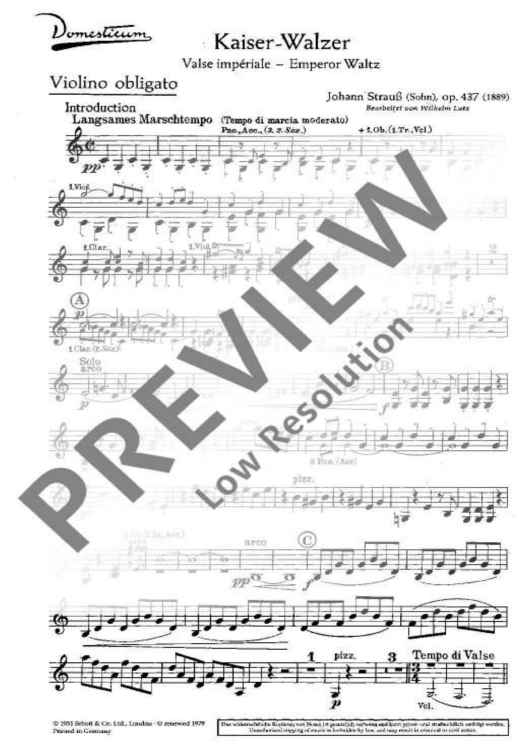 "Kaiserwalzer - Violin Obligat" Sheet Music by Johann Strauß (Son)