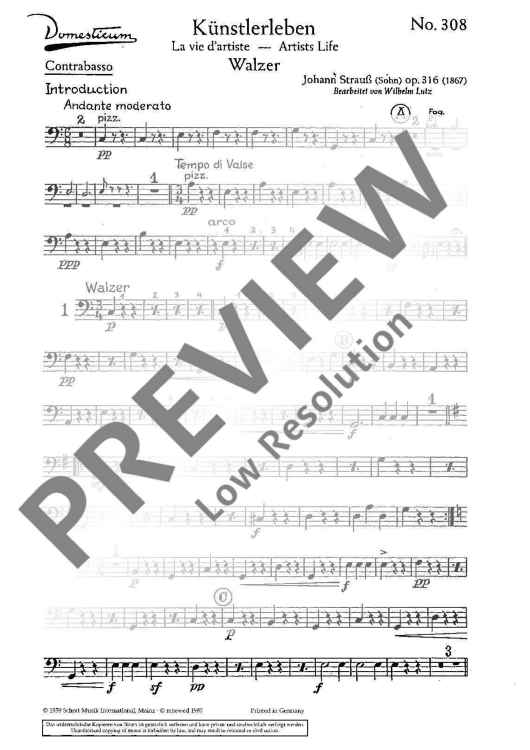 Digital Sheet Music for Künstlerleben - Double Bass by Johann Strauß (Son) scored for Salon Orchestra; id:488223
