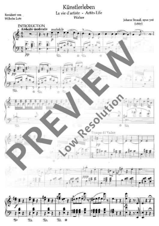 Digital Sheet Music for Künstlerleben by Johann Strauß (Son) scored for Piano; id:482325