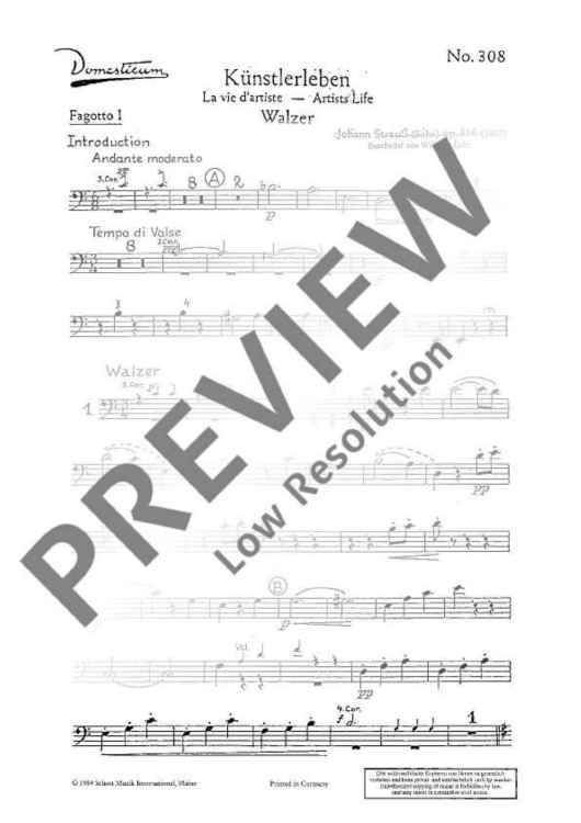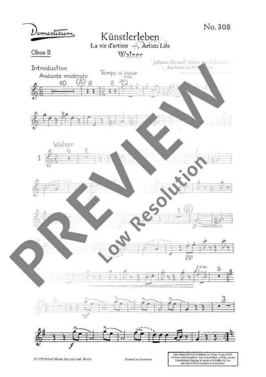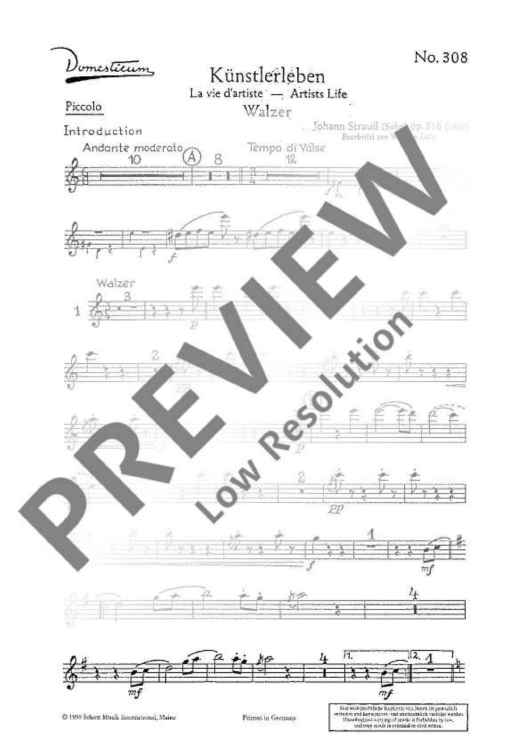 "Künstlerleben - Set of Parts" Sheet Music by Johann Strauß (Son)